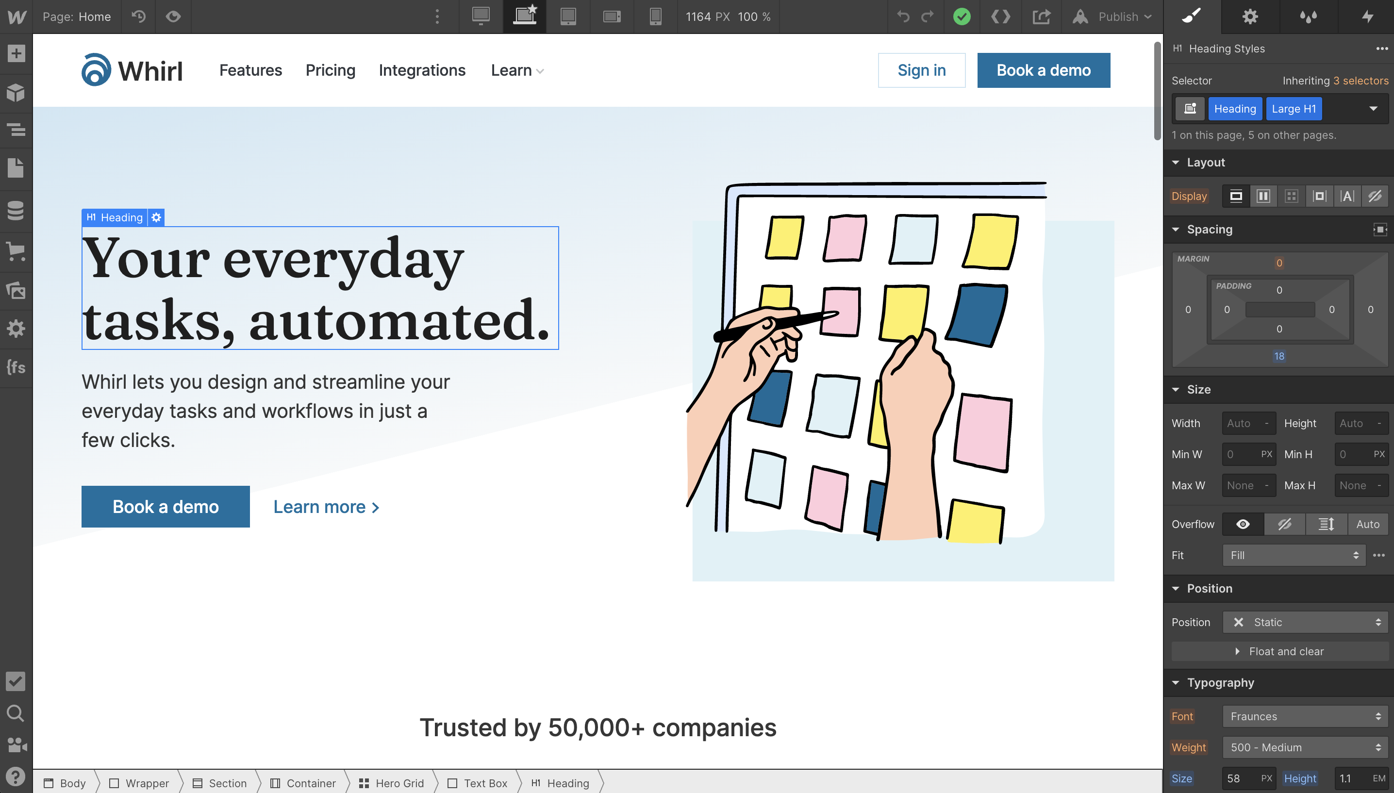 Feel like changing something in the template? All of our templates were built using Webflow without writing code. That means you can customize them in every way to suit your brand. Learn more about how to customize Webflow sites at Help Center